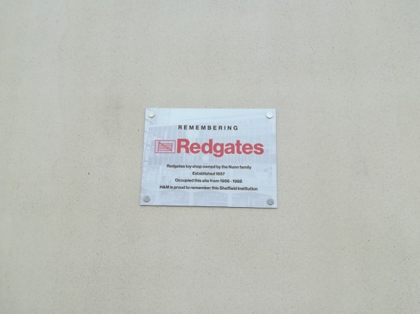 After getting bombed during the war, Redgates moved to Ecclesall Road followed in 1954 by a move to Moorhead finally settling into a purpose built store on Furnival Gate in 1962.